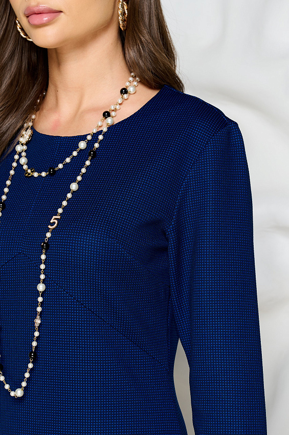 Платье трикотажное тёмно-синее с рукавами три четверти от производителя Bellovera. Модель A-силуэта, ткань с эффектом двойного тона создает благородный оттенок на сгибах, что добавляет изделию оригинальности. Круглый вырез горловины. Без звстёжки. Платье будет выглядеть уместно как в будни, так и в торжественный вечер. Легкие аксессуары и ваши любимые туфли помогут завершить образ.