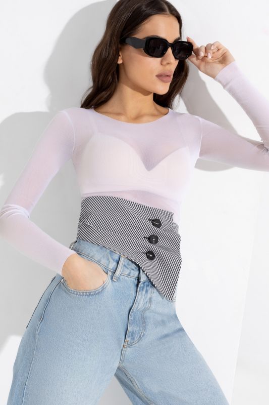 Оригинальный женский пояс-баска от компании Charutti. Модель выполнена из полотна "поплин клетка виши". С застёжкой на петли и пуговицы. По спинке резинка. Это отличное дополнение для Вашего стильного образа.