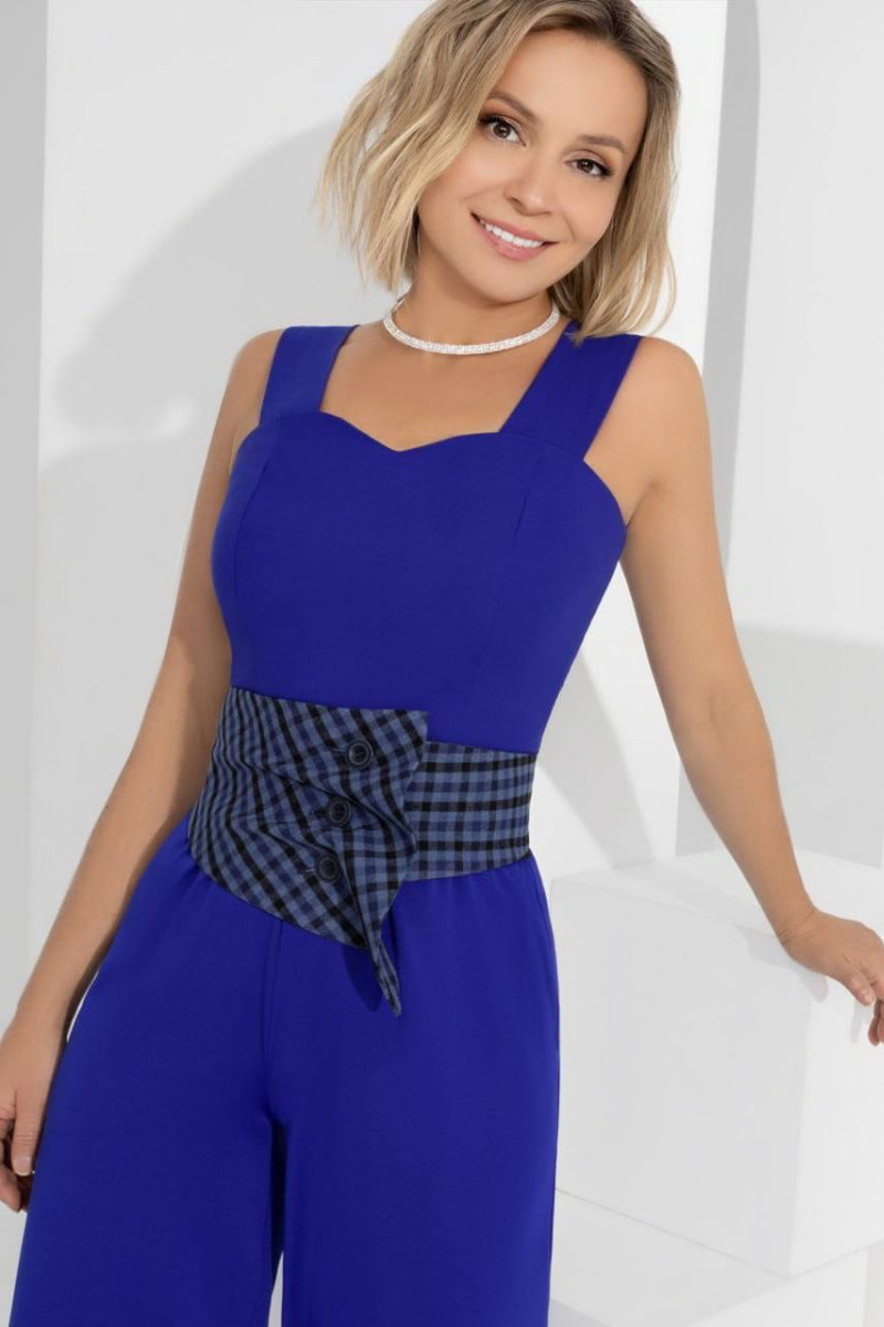 Оригинальный женский пояс-баска от компании Charutti. Модель выполнена из костюмного полотна " клетка-жаккард" в синем цвете. С застёжкой на петли и пуговицы. По спинке резинка. Это отличное дополнение для Вашего стильного образа.
