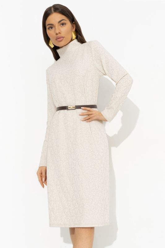 Платье прямое из трикотажа бежевого цвета