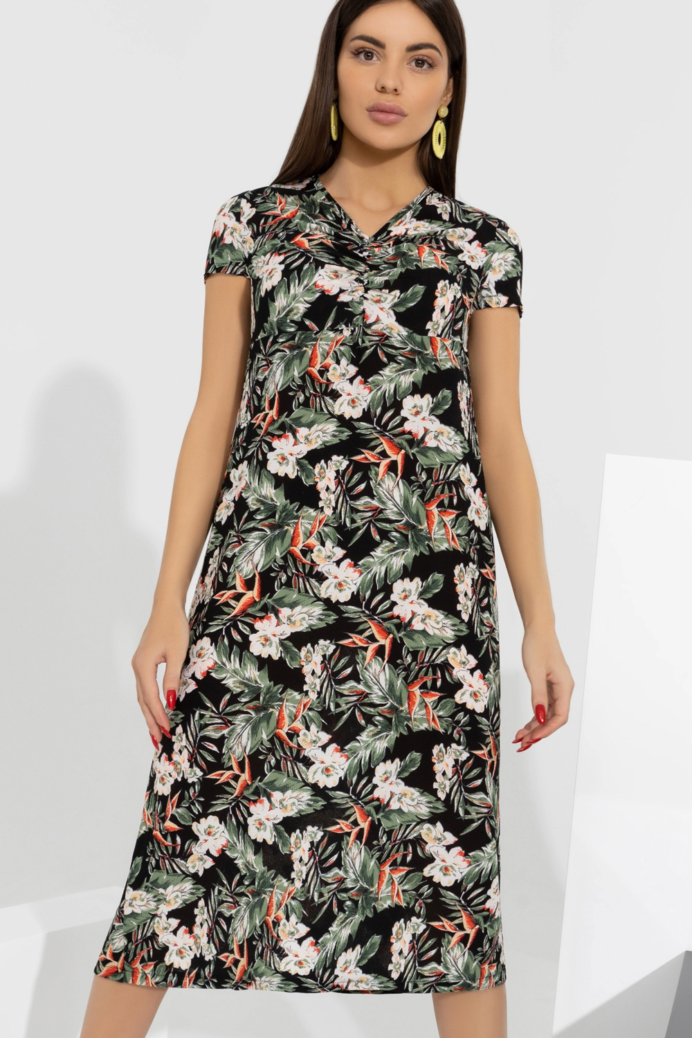 Привлекательное женское платье от компании Charutti. Модель свободного силуэта, выполнена из ткани "версачи принт". V-образный вырез горловины с защипами. Втачные короткие рукава. Отрезное под грудь. Идеальный выбор на каждый день.
