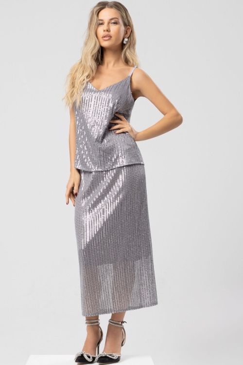 Серебристая юбка с пайетками