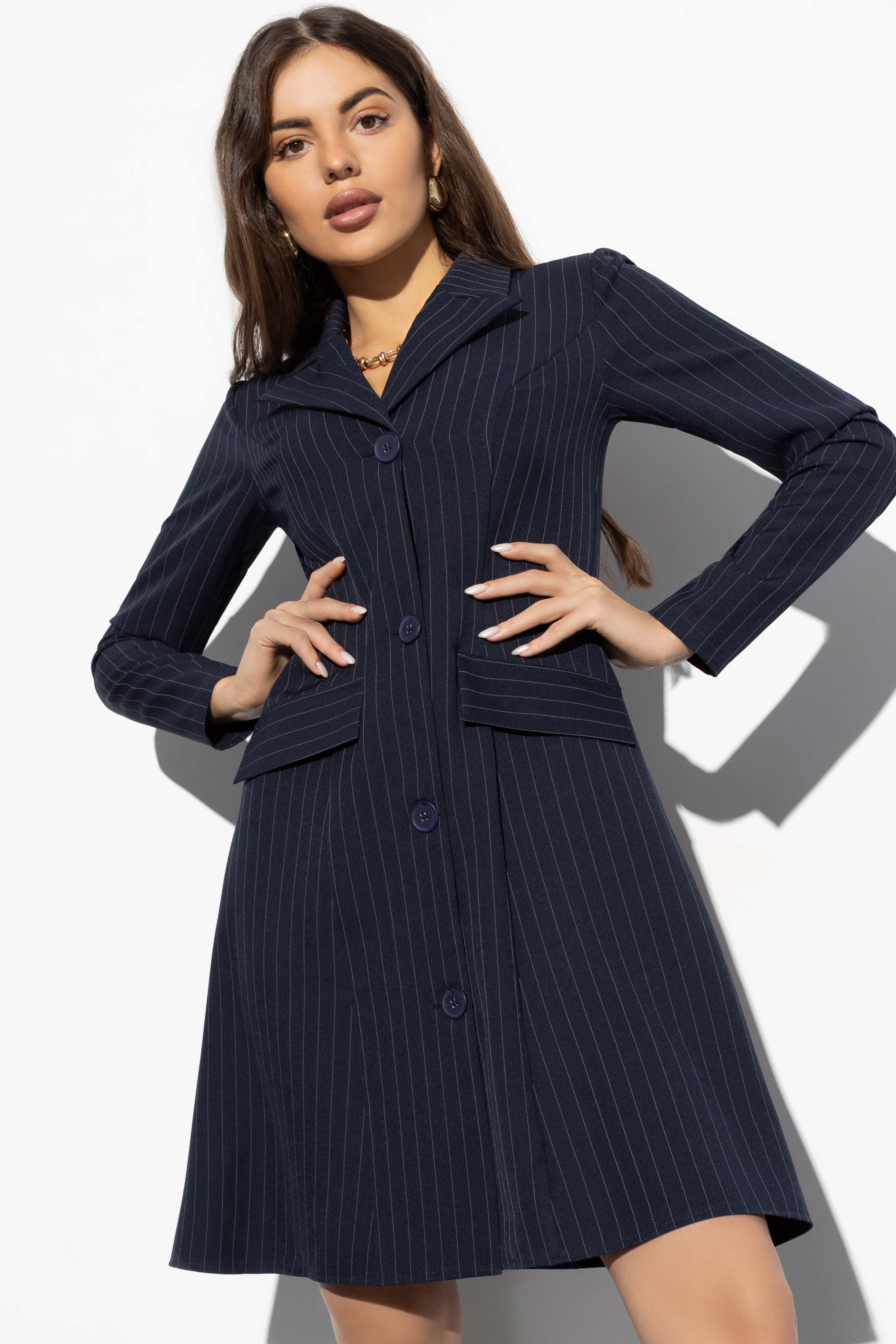 Синее платье-жакет в полоску