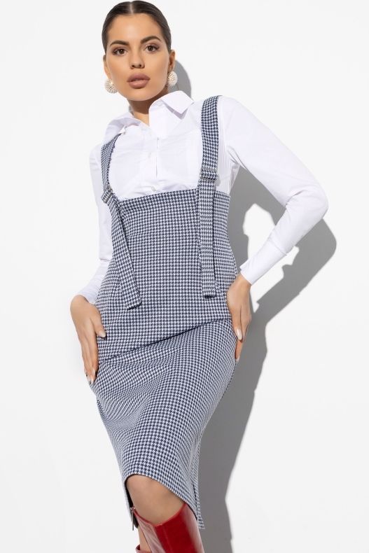 Трикотажный сарафан полуприлегающего силуэта с принтом гусиная лапка