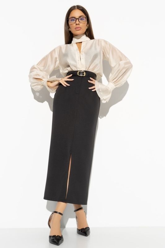 Юбка-карандаш длинная чёрная с разрезом по переду
