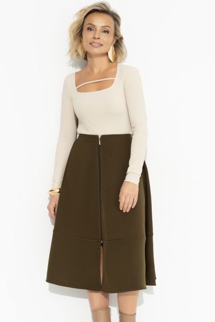 Юбка зелёная на молнии от компании Charutti. Модель свободного силуэта, выполнена из костюмной ткани "тиар". Притачной пояс. Идеальный выбор для создания стильного образа.