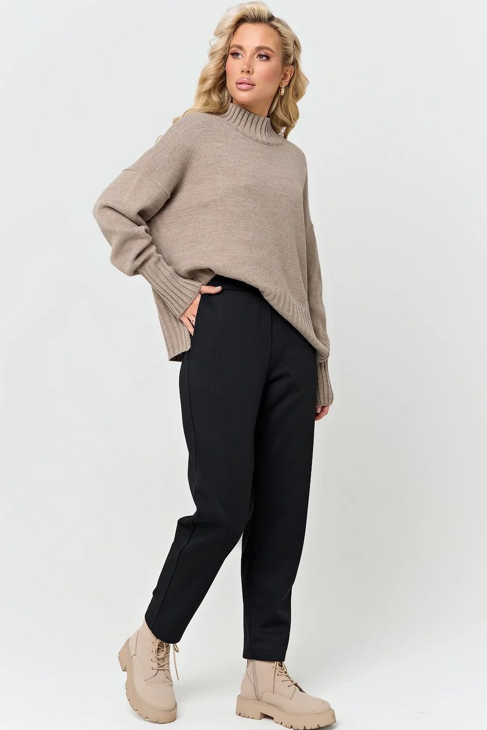 Чёрные трикотажные брюки с начёсом от производителя Jetty. Модель прямого силуэта, с притачным поясом на резинке. В боковых швах карманы. Без застёжки. Идеальное решение для Вашего стильного гардероба.