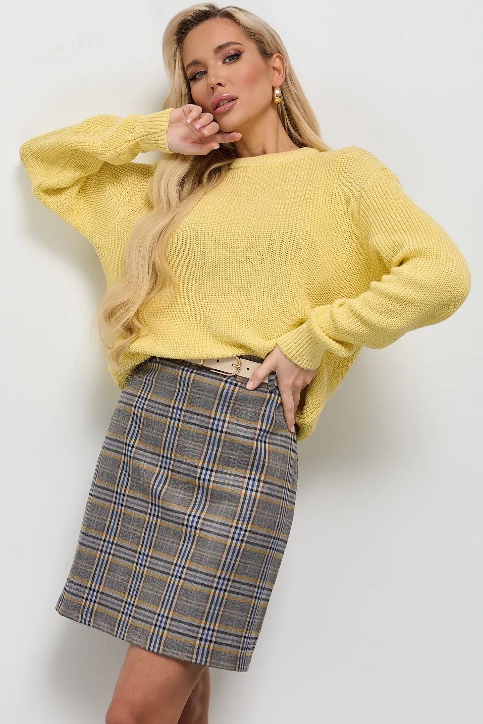 Короткая юбка в клетку от бренда Jetty. Модель слегка расклешённого к низу силуэта, выполнена из костюмной ткани. Притачной пояс с застёжкой на потайную молнию, оснащен петлями для ремня. Юбка на подкладе. Идеальный выбор для создания стильного образа. Ремень в комплект не входит.