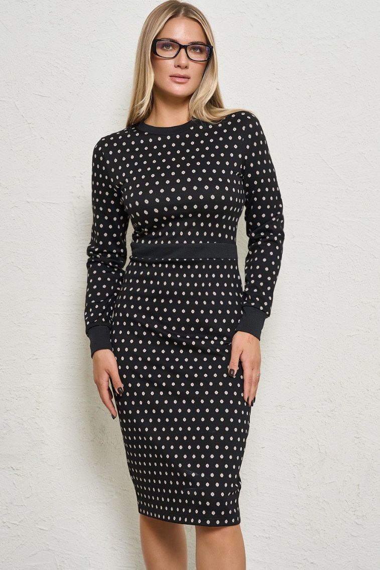 Платье-футляр чёрное трикотажное с принтом