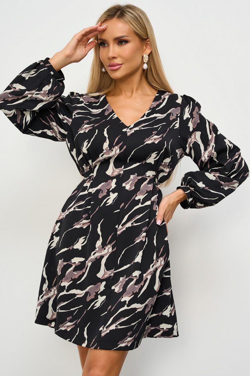 Платье короткое чёрное с принтом