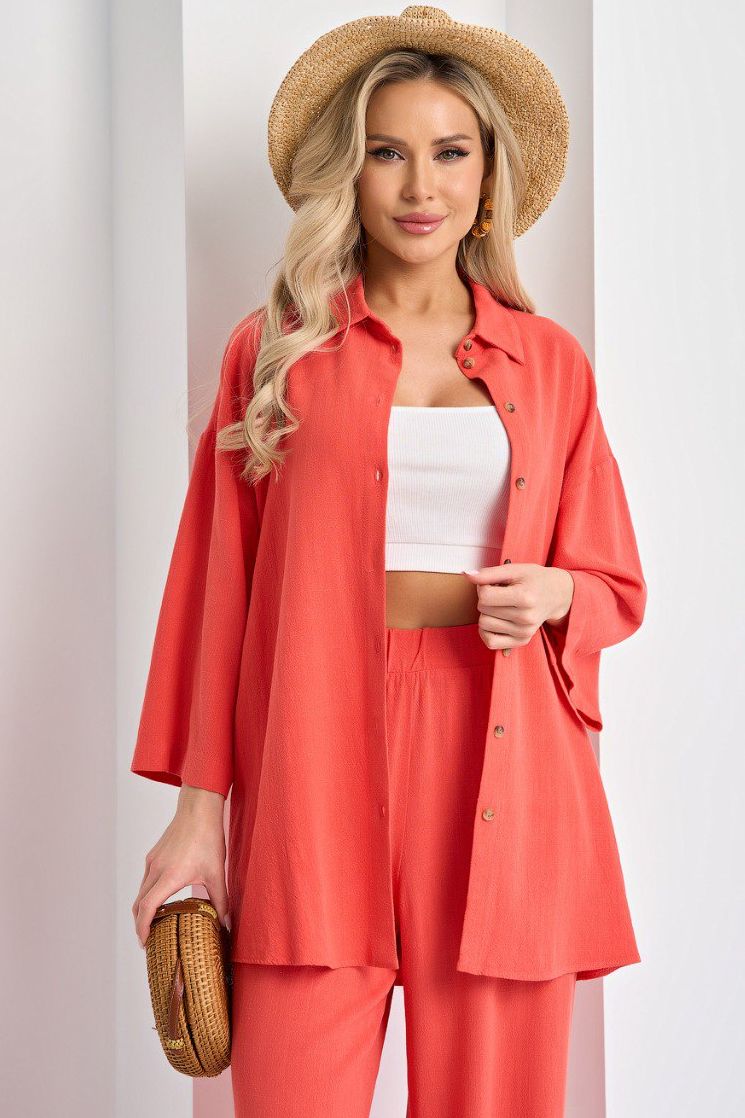 Рубашка льняная кораллового цвета