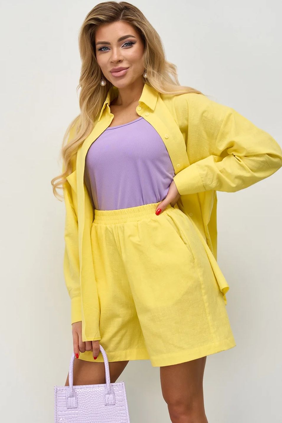 Жёлтые хлопковые шорты с карманами