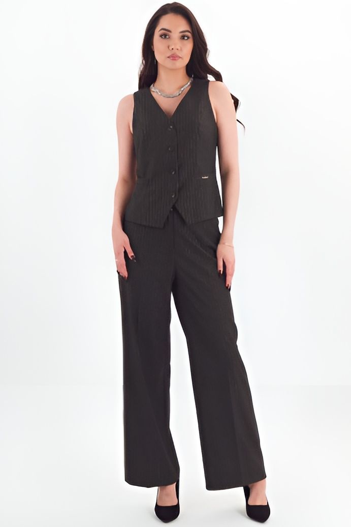 Жилет укороченный серого цвета в полоску
