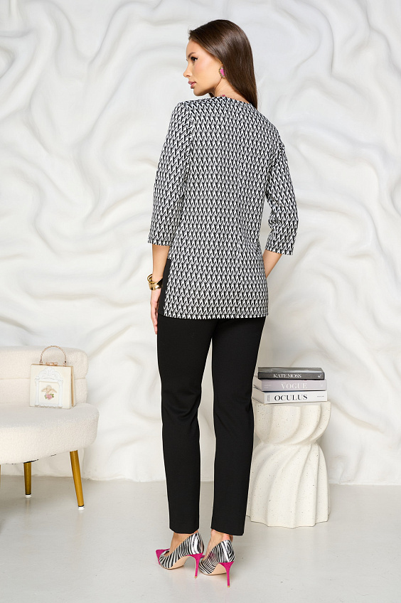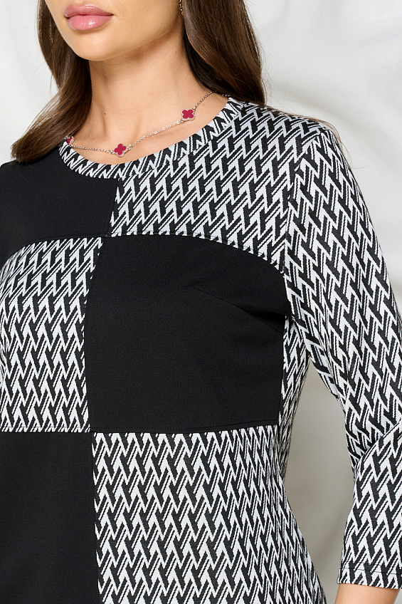 Джемпер трикотажный комбинированный от бренда Bellovera. Модель свободного кроя, выполнена из полотна в чёрно-белом оттенке. Горловина округлая, длина рукава 3/4. Комбинированный крой изделия послужит акцентом в вашем образе, достаточно добавить сумочку и ваши либимые туфли. Офисный образ готов!