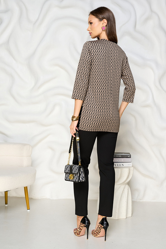 Джемпер трикотажный комбинированный от бренда Bellovera. Модель свободного кроя, выполнена из полотна в чёрно-бежевом оттенке. Горловина округлая, длина рукава 3/4. Комбинированный крой изделия послужит акцентом в вашем образе, достаточно добавить сумочку и ваши либимые туфли. Офисный образ готов!