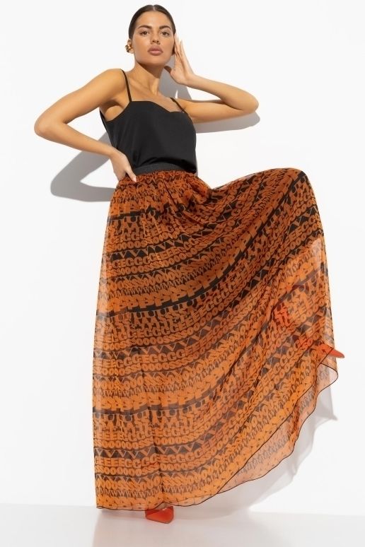 Комплект из платья и юбки в длине макси от компании Charutti. кПлатье-комбинация длины макси, выполнена из плательного полотна "ниагара". На тонких бретелях, Юбка из шифона, на резинке. Отличный выбор для создания образа выходного дня.