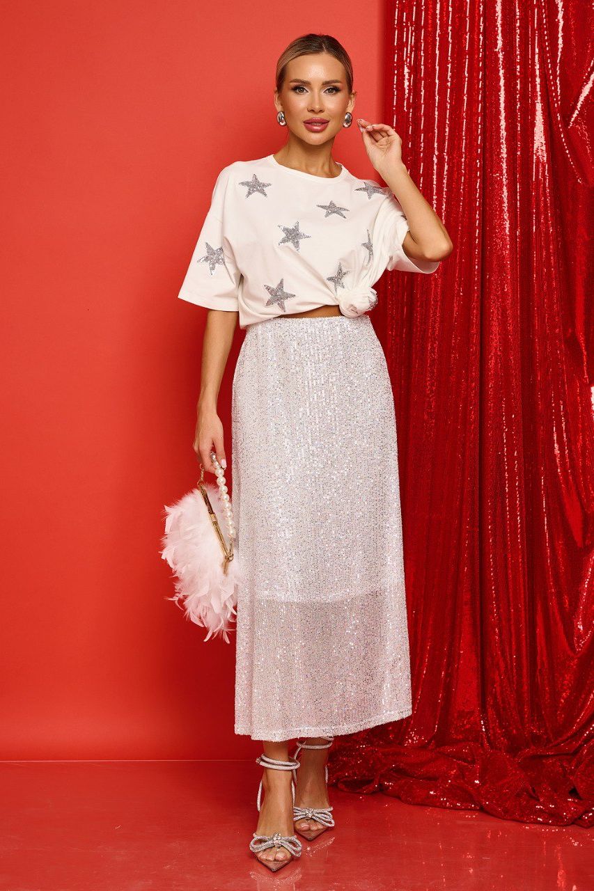 Юбка длинная белая с пайетками