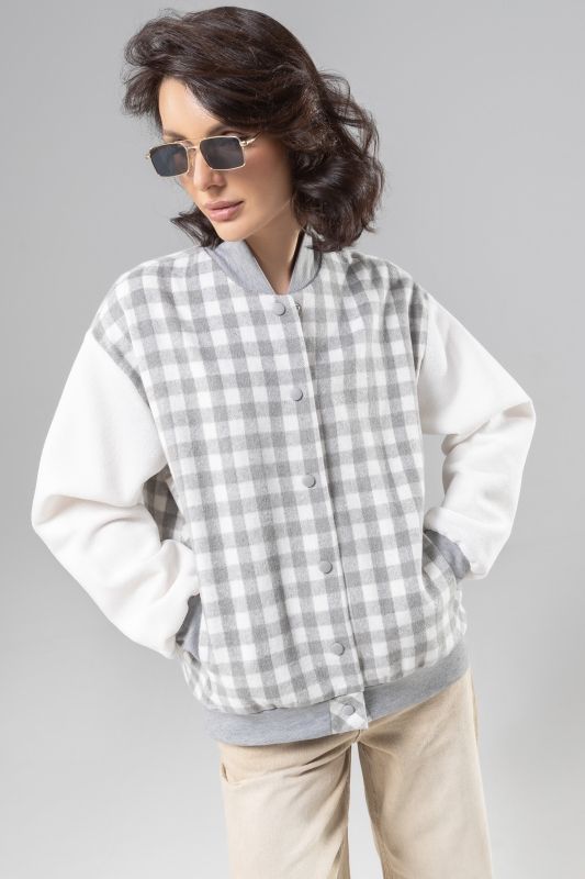 Бомбер серый в клетку на кнопках