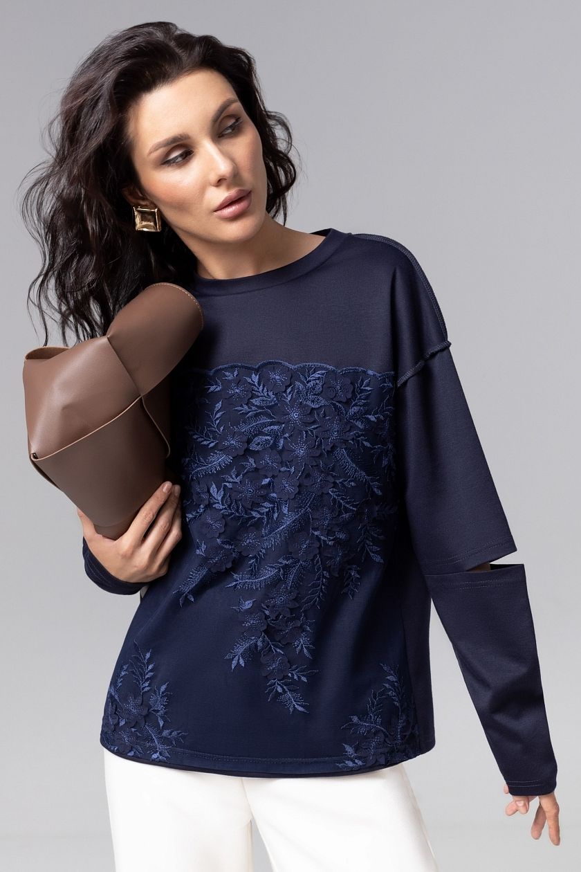 Лонгслив тёмно-синий с разрезами на рукавах