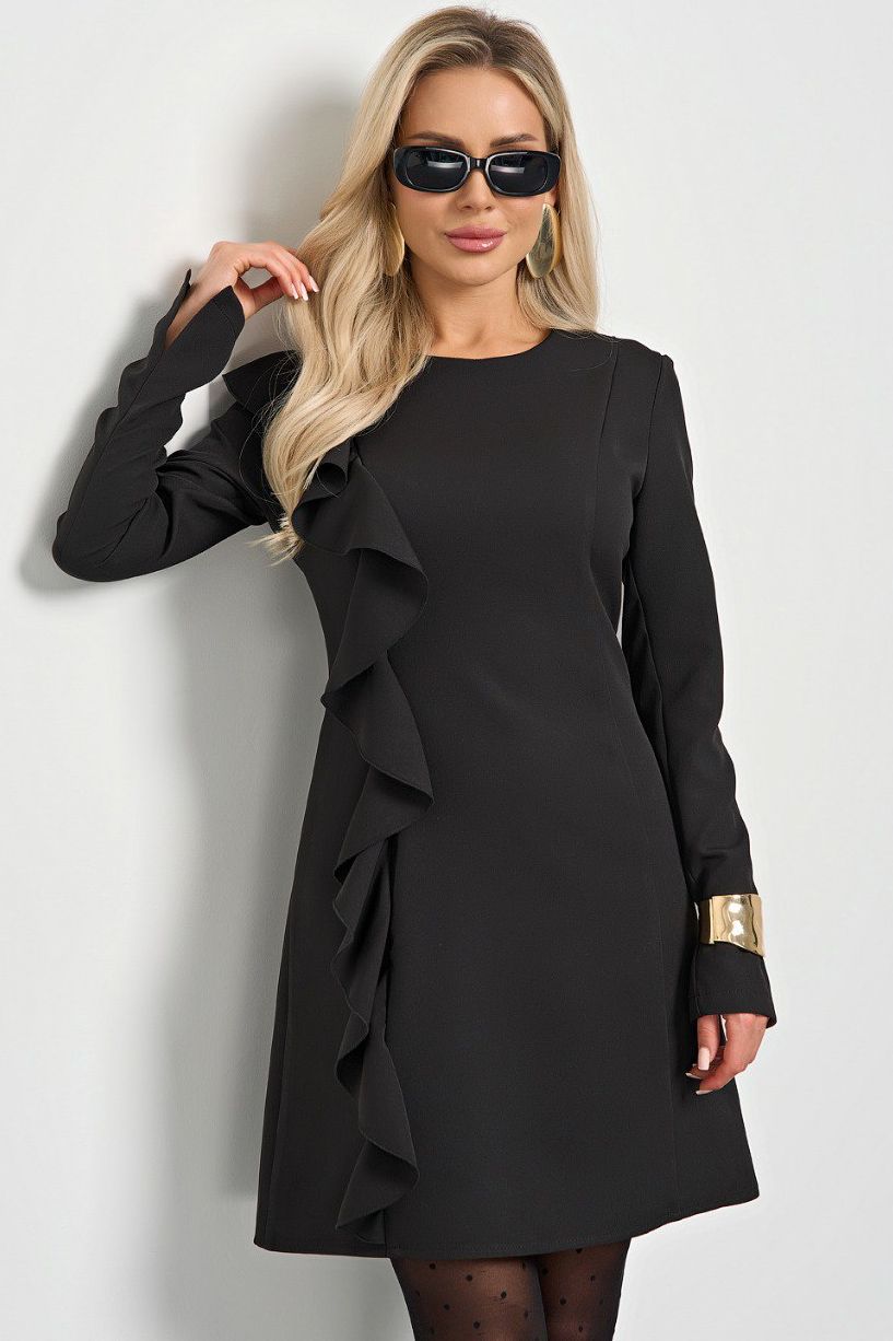 Чёрный костюм с брюками и блузкой с отделкой из шифона 52 размера