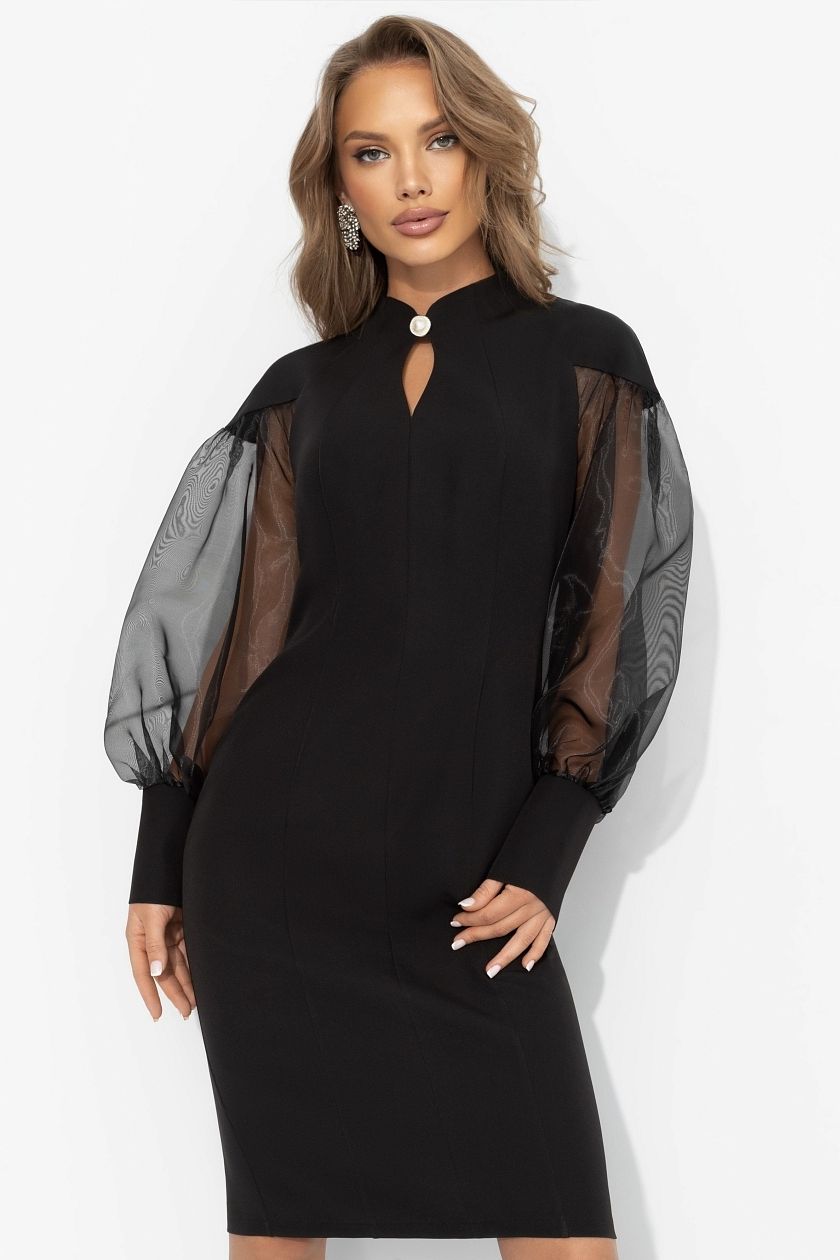Платье-футляр чёрное с объёмными рукавами