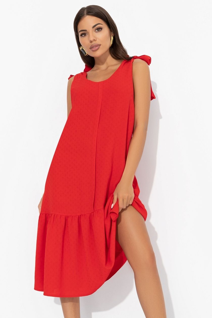 Сарафан свободный красного цвета от компании Charutti, выполнен из ткани "Сингапур". Бретели оформлены завязками. Изделие без застежек. Элегантный и женственный лук вам гарантирован!