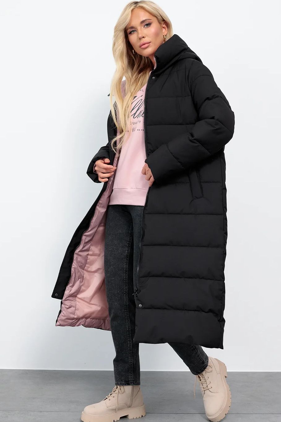 Длинный чёрный пуховик от производителя Jetty. Модель прямого силуэта, выполнена из плащёвой ткани. Глубокий капюшон с застежкой на кнопки. Воротник – стойка. Спущенная линия плеча. Длинный рукав. По переду изделия прорезные карманы с листочкой. Центральная застежка- двойная молния. Наполнитель - экопух 400 гр./м2. Изделие рекомендовано для носки на температурный режим до -30 градусов. Идеальный выбор на каждый день.