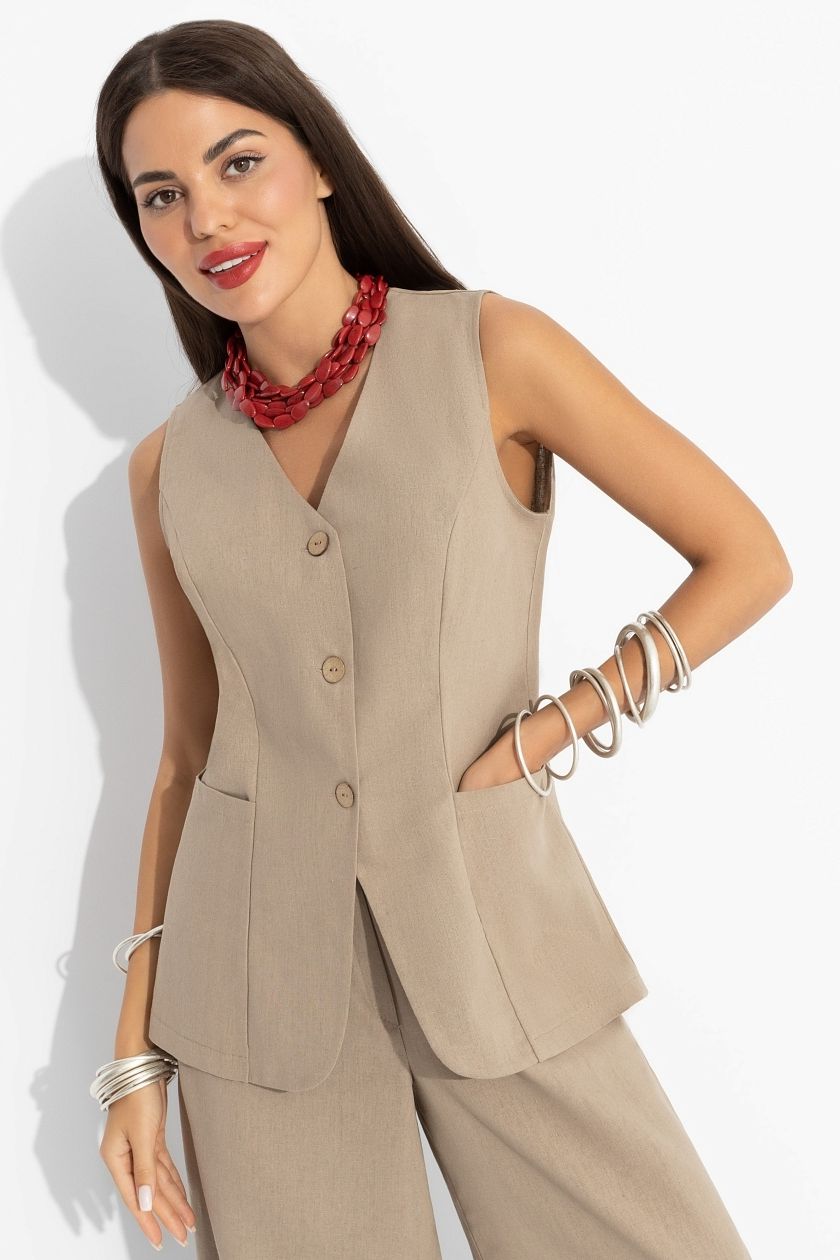 Жилет льняной бежевый